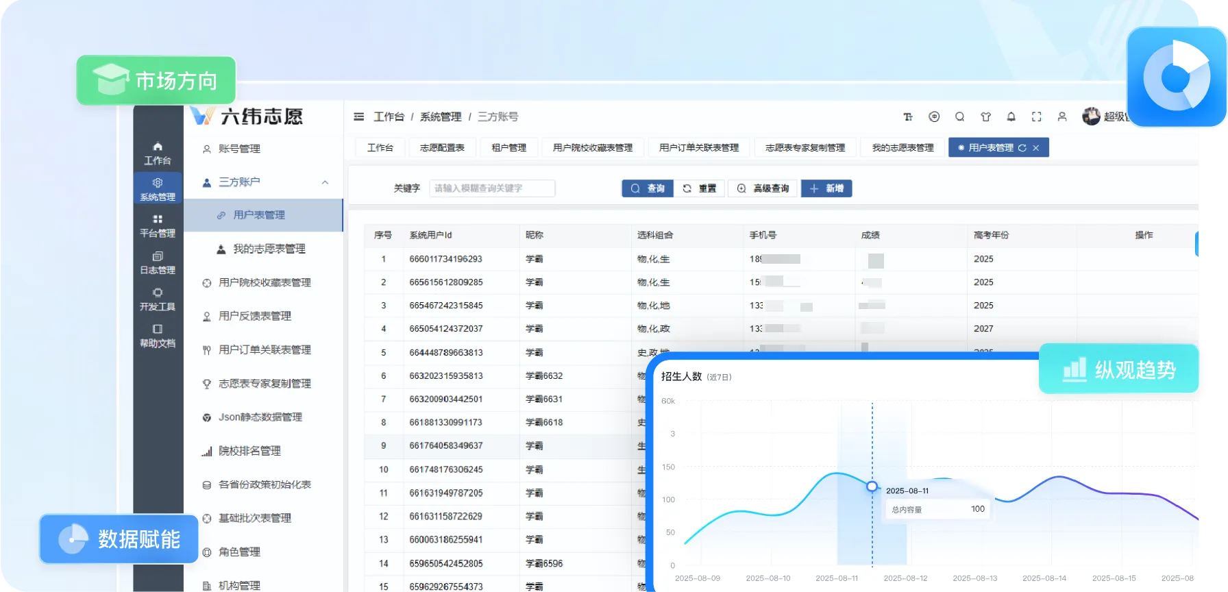 六维志愿3年来服务的学生的用户数量
